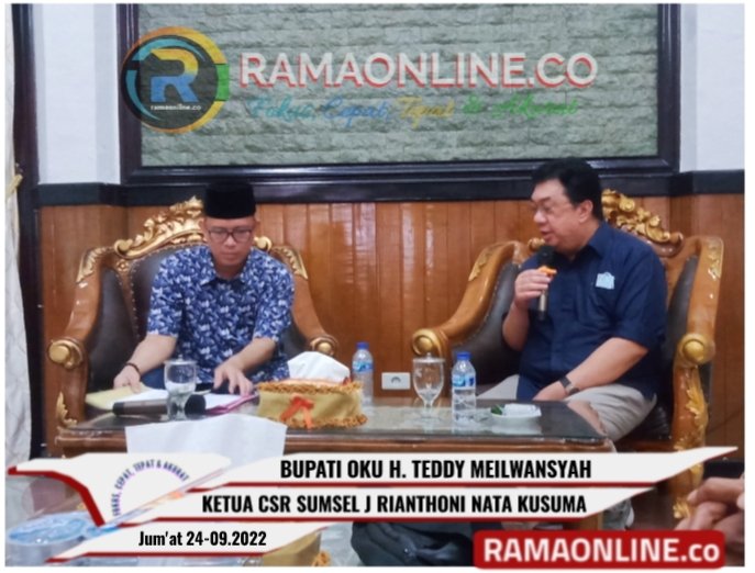 Sumsel-OKU-Ramaonline.co…Ketua CSR Provinsi Sumatera Selatan yang juga adalah Wakil Ketua Umum CSR Nasional J Rianthoni Natakusuma melakukan audiensi dan silaturahmi bersama sejumlah elemen Masyarakat kecamatan ulu ogan hari ini jum’at (23/09) bertempat di kediaman dinas Bupati Ogan Komering Ulu.