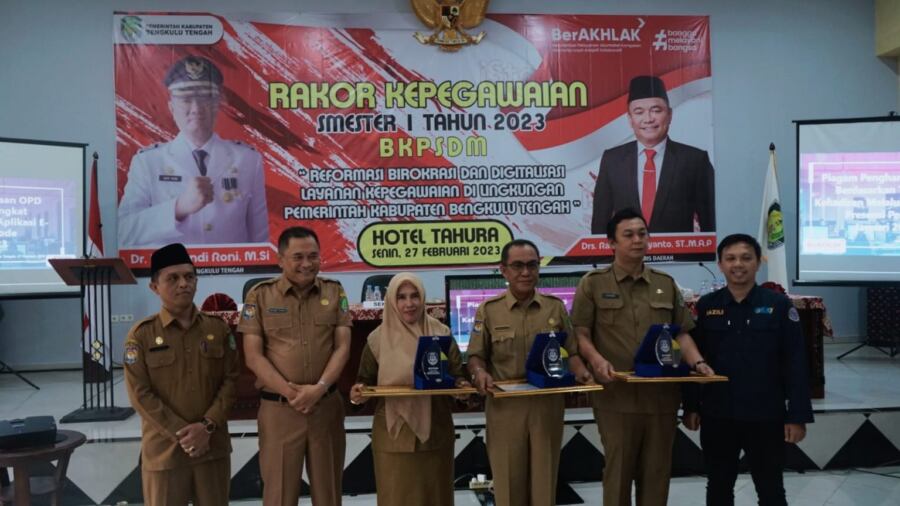 Hal senada disampaikan oleh Sekretaris Daerah Kabupaten Bengkulu Tengah, Drs. Rachmat Riyanto, S.T., M.AP.,dalam sambutannya Pemkab Bengkulu Tengah mengapresiasi BKPSDM yang telah melakukan perubahan dalam pelayanan kepegawaian dari sistem manual menjadi sistem digital yang berbentuk aplikasi SIAP Pegawai. “Kita harapkan dengan adanya Rakor Kepegawaian ini dapat membentuk pegawai yang berkualitas dalam era digitalisasi ini, yang berkompeten demi kemajuan Kabupaten Bengkulu Tengah” ujarnya.