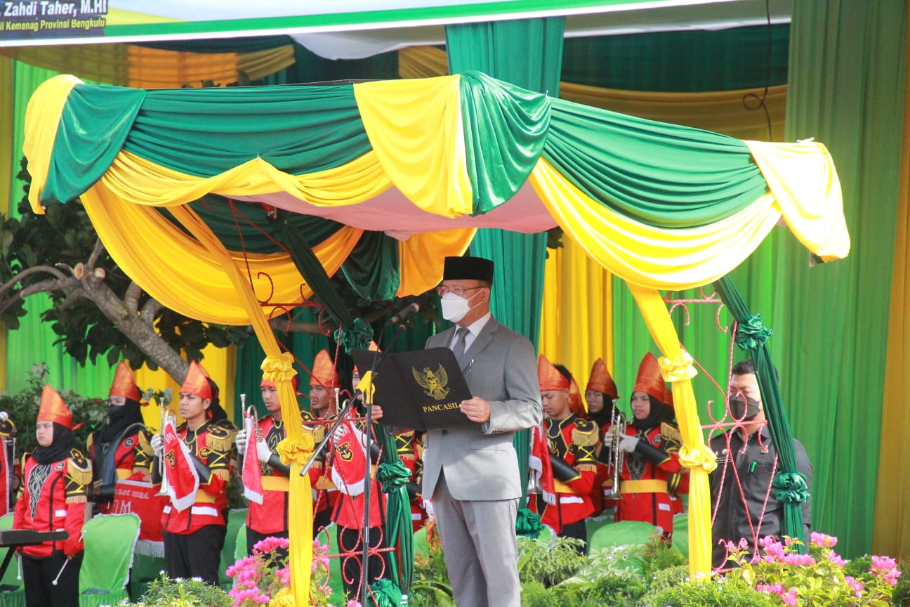BENGKULU, ramaonline.co – Gubernur Bengkulu Rohidin Mersyah menjadi Inspektur Upacara Peringatan Hari Amal Bakti ke-76 Kementerian Agama Tahun 2022, Senin (3/1/2022) di lapangan upacara MAN 2 Kota Bengkulu. Membacakan pidato Menteri Agama RI Yaqut Cholil Qoumas, Gubernur Rohidin menyampaikan bahwa pada usia yang ke-76 ini, Kementerian Agama harus terus berbenah.